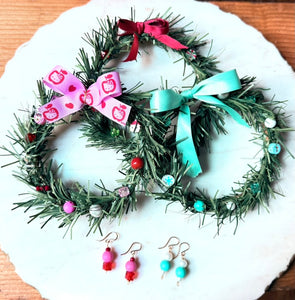 One of the things that made me the most excited about joining Homegrown Studio Collective was the ability to once again host workshop and jewelry parties! In this inaugural 90 minute workshop we are going to prepare for holiday decorating by making a set of beaded miniature wreath ornaments and a pair of coordinating earrings. $40 includes materials with your choice of red+pink, red+green, aqua+white. Other color options available upon request. Space is limited.